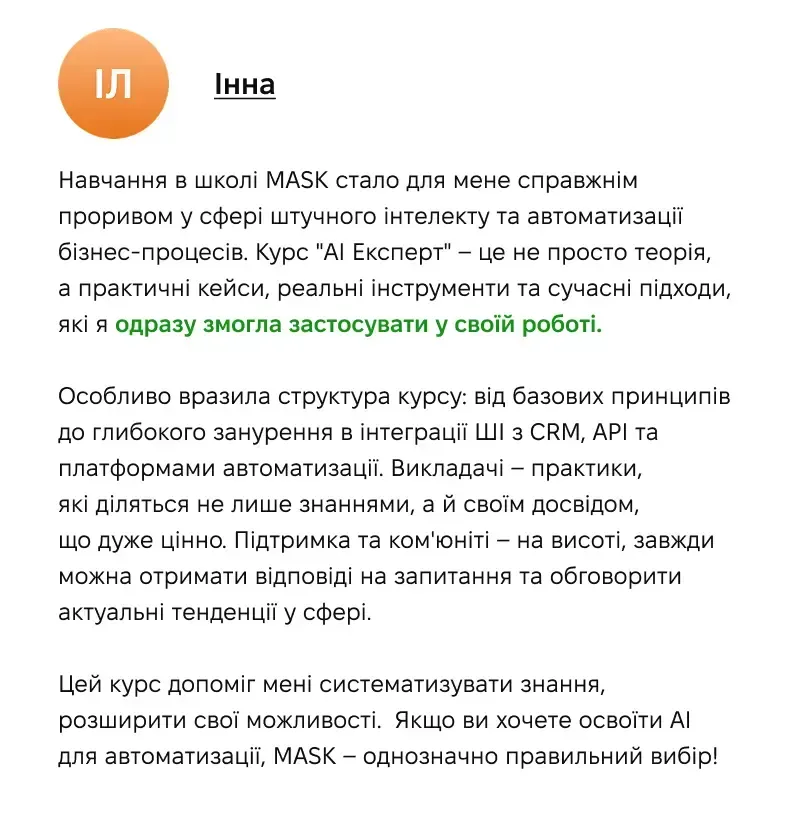 Власник AI-automation агенції на Upwork, засновник MASC - школи автоматизаторів маркетингу та AI-експертів.